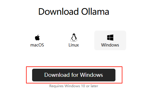 首先访问官网下载地址下载安装包:Download Ollama on Windows