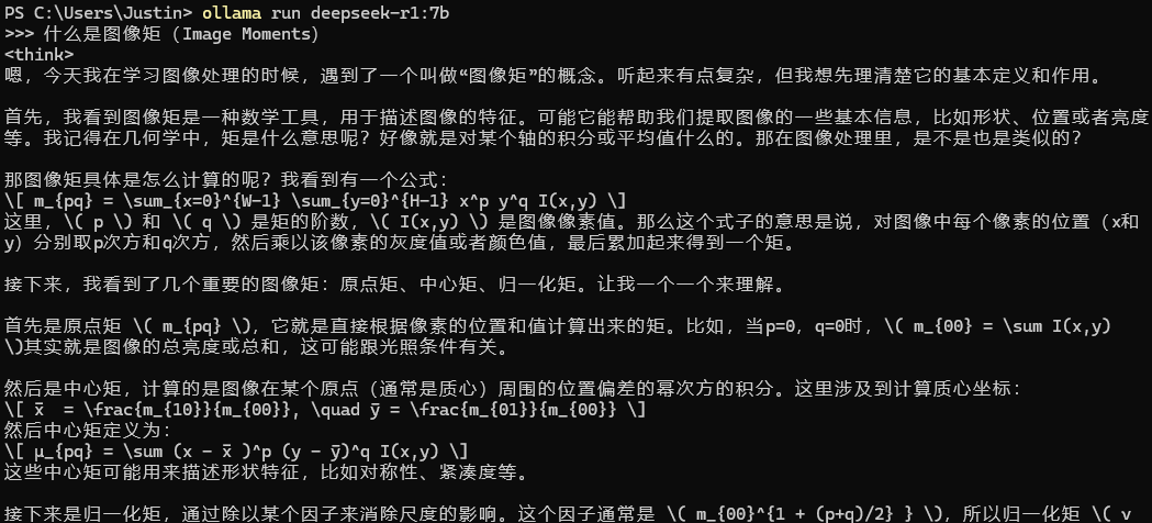 示例:ollama run deepseek-r1:7b