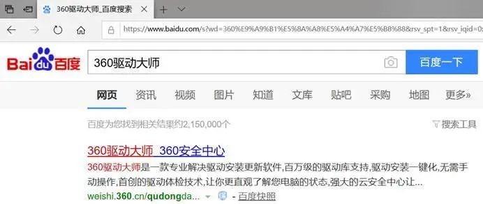 以百度搜索引擎为例,我们搜索“360驱动大师”,会出现如下界面: