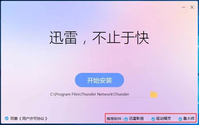 当我们安装软件的时候应注意捆绑软件的取消勾选,我们以迅雷为例,在安装过程中注意窗口角落是否有“推荐软件”字样,若有应及时取消勾选。