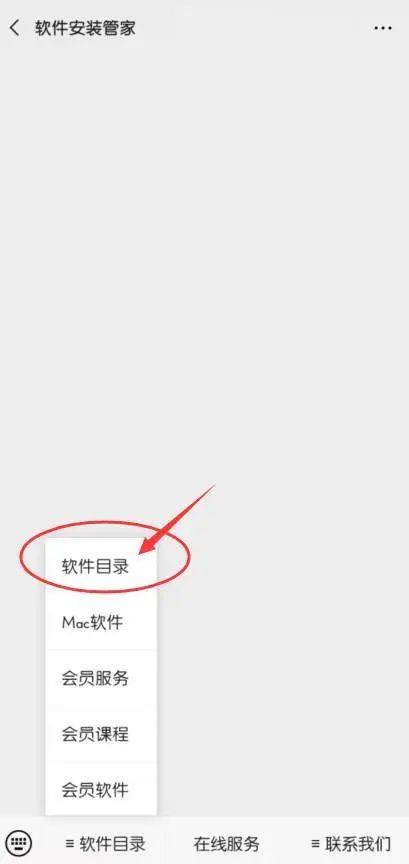我们在获取专业软件时,“软件安装管家”公众号 能够帮助我们更方便、快捷地安装完毕并成功运行软件,我们进入公众号,找到“软件目录”按钮,点击进入:
