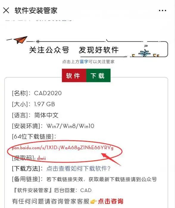 我们以“AutoCAD”为例,在目录中找到并进入,我们可以发现百度网盘链接,此时我们只需复制链接并使用百度网盘下载即可。
