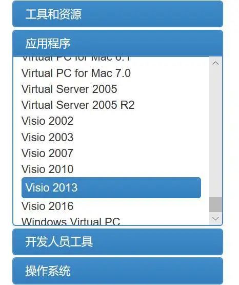 首先进入官网https://msdn.itellyou.cn/(建议将此网址记下来放进收藏夹,以免假冒) ,我们以 “Visual Studio 2013”为例,在“应用程序”里找到并单击: